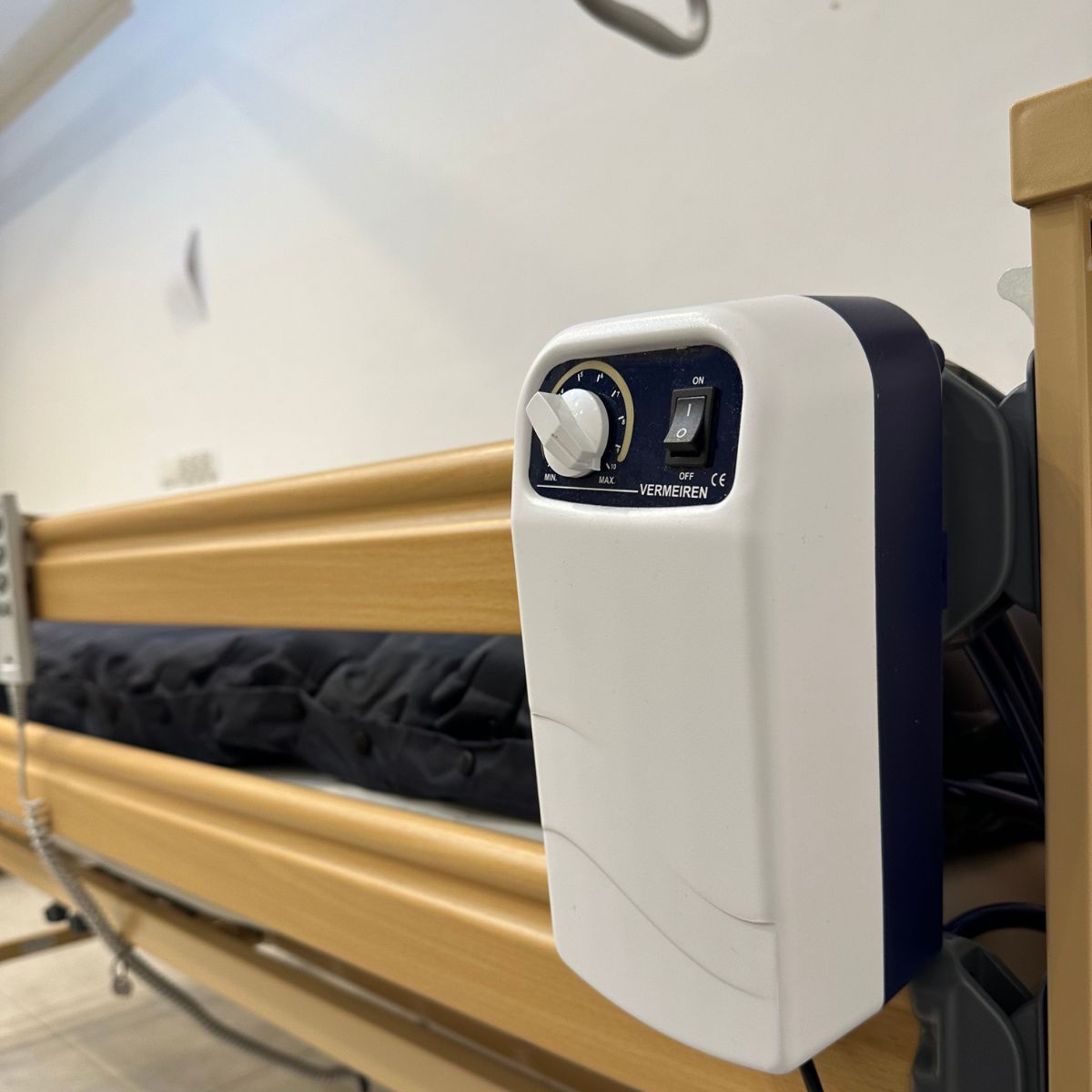 Praca materaca wspierana jest przez pompę z regulacją ciśnienia, pozwalającą na dopasowanie parametrów do masy ciała użytkownika oraz aktualnych potrzeb opiekuńczych.